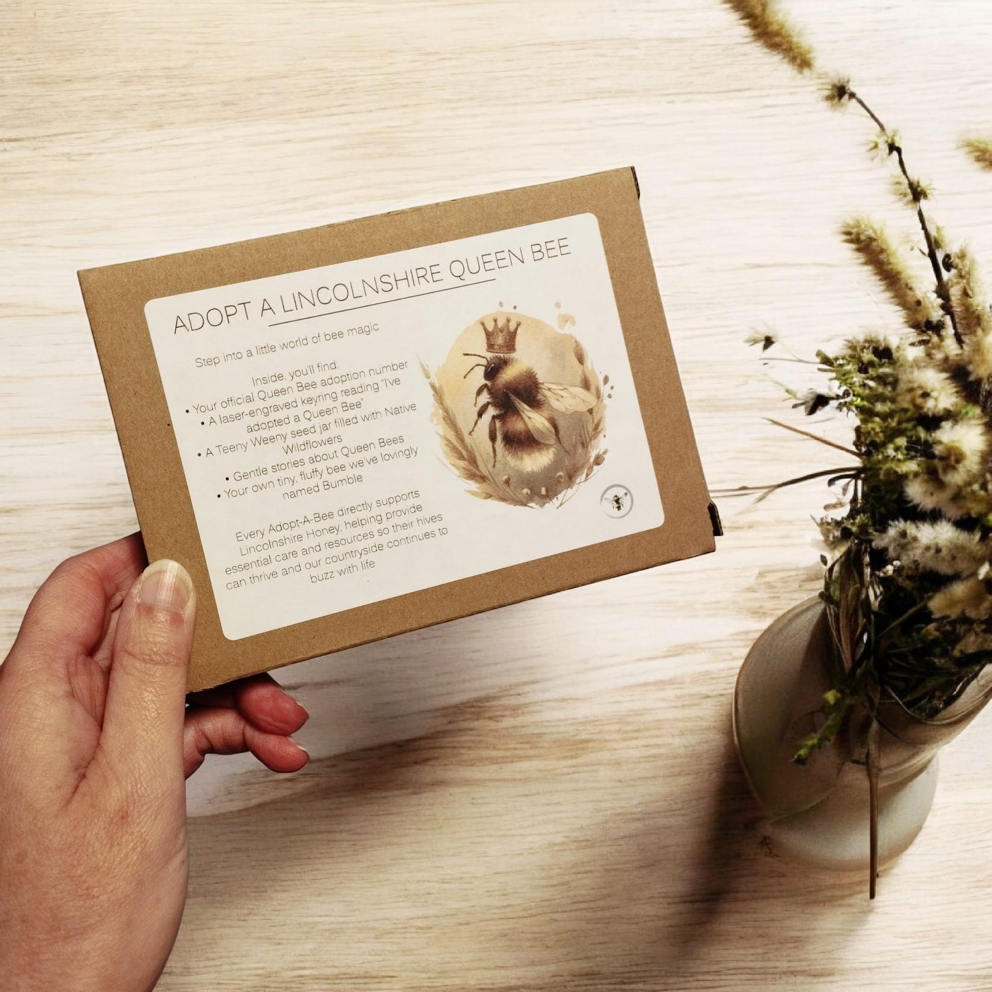 Step into the enchanting world of bees with our Adopt a Lincolnshire Queen Bee gift pack, a unique experience that delights, educates, and celebrates the wonder of nature. This isn’t just a gift, it’s a magical journey that connects your loved one to the incredible work of our local bees and supports their wellbeing. Every item has been thoughtfully curated to create a sense of joy, wonder, and eco-conscious care.