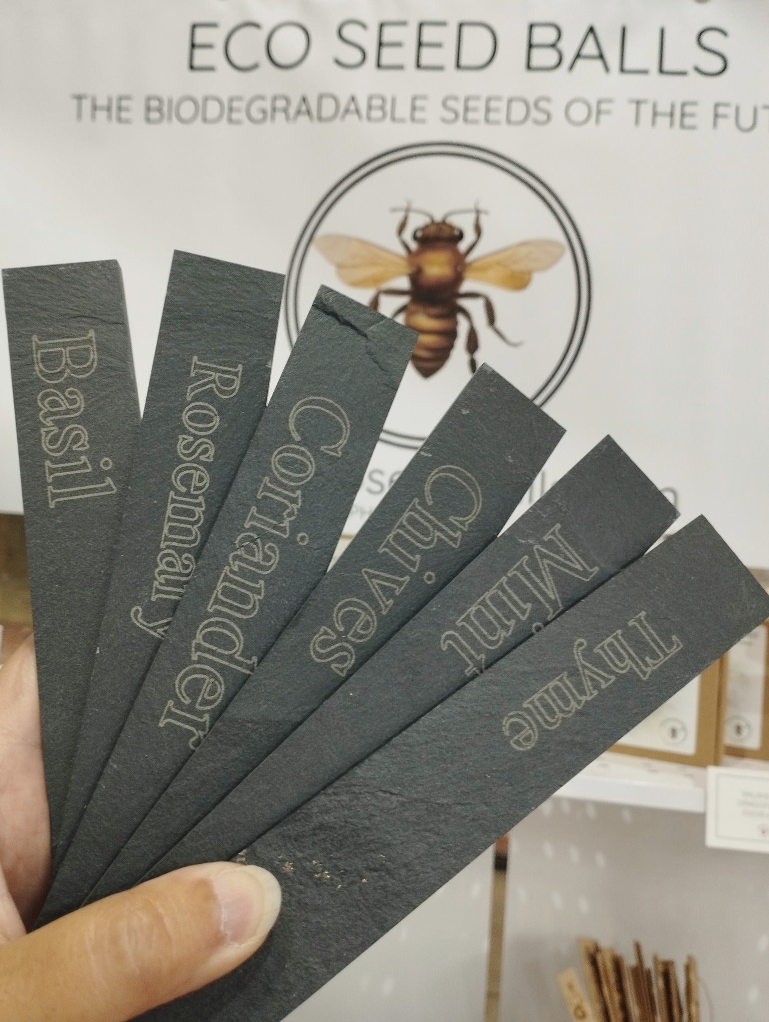 Slate is an ideal eco-friendly choice: it is a natural, long-lasting material that requires no chemical treatments, can withstand all weather conditions, and can be reused season after season. Its minimal processing and exceptional lifespan make it a sustainable alternative to plastic markers, perfectly complementing Eco Seed Balls’ commitment to reducing waste and choosing materials that work in harmony with the environment.